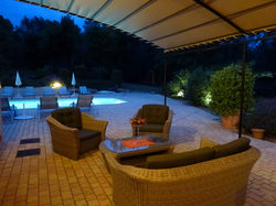 In de mooie tuin ook een pétanque baan; ook is er een tafeltennistafel aanwezig. Op het terras met plancha staat een gezellige zithoek en een grote eettafel met 8 stoelen. Langs het zwembad staan er ligstoelen.
